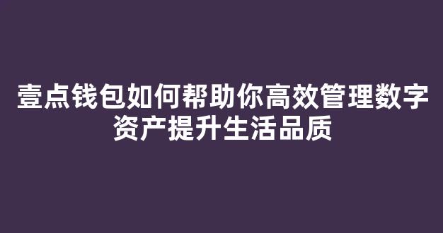 壹点钱包如何帮助你高效管理数字资产提升生活品质