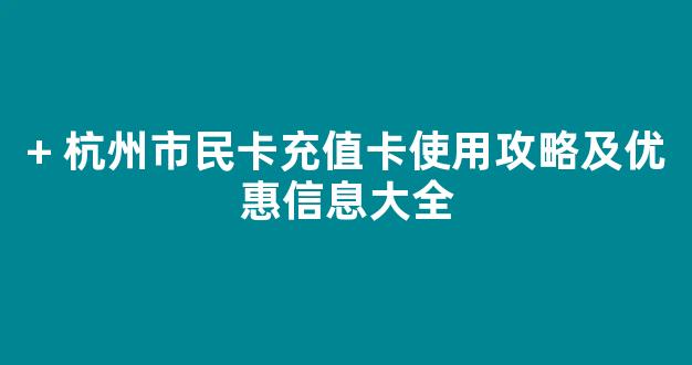 杭州市民卡充值卡使用攻略及优惠信息大全