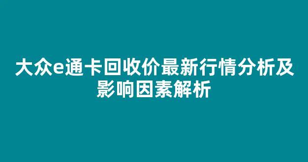 大众e通卡回收价最新行情分析及影响因素解析