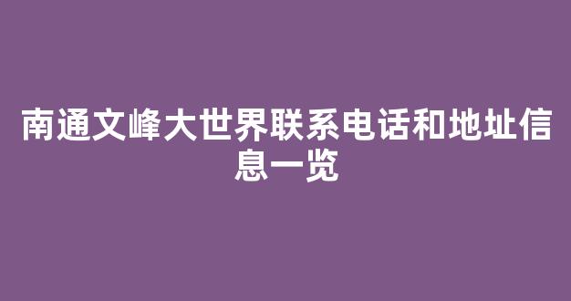 南通文峰大世界联系电话和地址信息一览