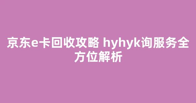 京东e卡回收攻略 hyhyk询服务全方位解析