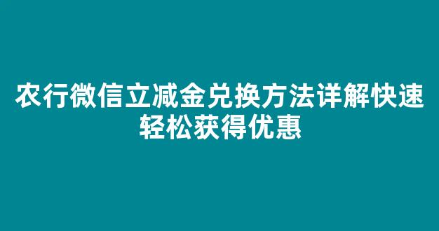 农行微信立减金兑换方法详解,快速轻松获得优惠