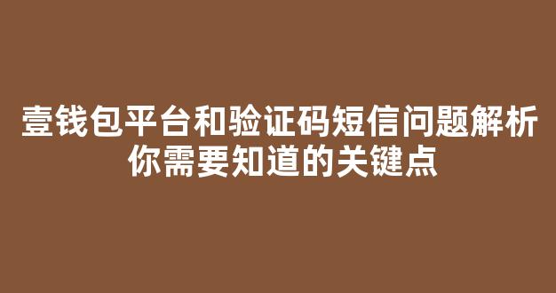 壹钱包平台和验证码短信问题解析 你需要知道的关键点