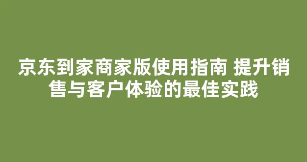京东到家商家版使用指南:提升销售与客户体验的最佳实践