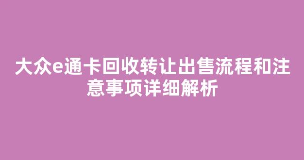 大众e通卡是一种方便的交通支付工具,但随着使用时长的增加,许多人会选择将其回收或转让。对于想要回收或转让e通卡的用户来说,了解整个流程和相关注意事项是非常重要的。本文将详细解析大众e通卡回收转让出售的流程,帮助你更好地理解和操作。