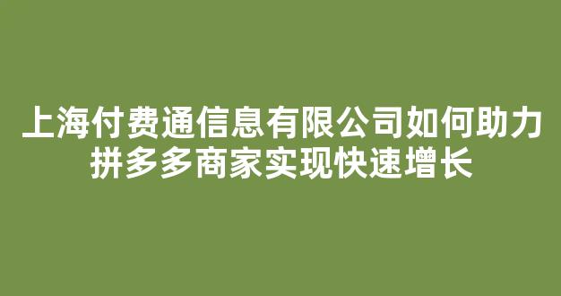 上海付费通信息有限公司如何助力拼多多商家实现快速增长