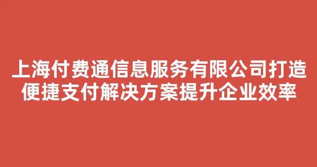 上海付费通信息服务有限公司致力于为企业提供便捷的支付解决方案,帮助企业提升效率。随着互联网技术的飞速发展,支付服务不仅仅局限于消费者购买产品的过程,企业在日常运营中的支付需求也变得越来越复杂。上海付费通信息服务有限公司通过创新的技术和完善的服务体系,能够为企业提供高效、安全、便捷的支付平台,帮助他们在激烈的市场竞争中占得先机。本文将全面介绍上海付费通如何通过其解决方案为企业提升效率,以及选择合适的支付平台的重要性。
