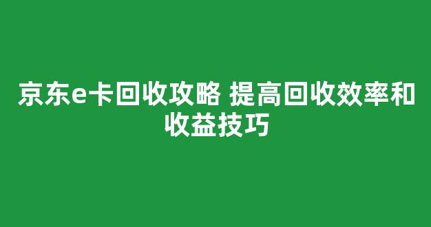 随着网购的普及,京东e卡作为一种便捷的支付方式,受到越来越多消费者的青睐。许多人在使用京东e卡时,可能会面临卡内余额未使用完的情况。这时候,选择将京东e卡回收,不仅能节省一定的资金,还能提高回收效率和收益。本文将详细介绍京东e卡回收的相关技巧,帮助你在回收过程中获得更高的回报。
