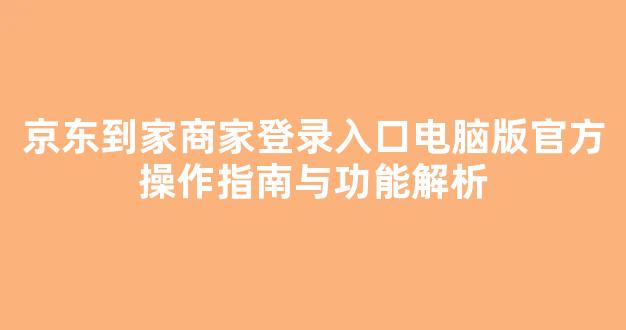 京东到家商家登录入口电脑版官方操作指南与功能解析
