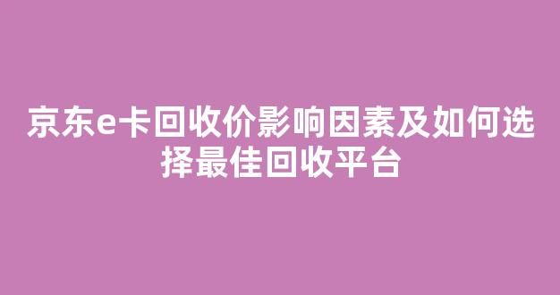 在如今这个电商快速发展的时代,京东e卡作为一种方便快捷的支付工具,已经被越来越多的人所使用。然而,随着使用频率的增加,许多人开始面临京东e卡回收的需求。如何选择一个安全、快捷且有诚信的回收平台成为了用户关注的重点。本文将从多个角度分析京东e卡回收价的影响因素,并提供如何选择最佳回收平台的建议。