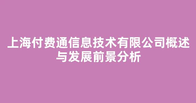 上海付费通信息技术有限公司概述与发展前景分析
