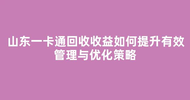 随着科技的进步和数字支付方式的普及,山东一卡通的回收工作面临新的挑战和机遇。如何通过优化管理,提升一卡通回收的收益,已成为当前亟待解决的问题。回收过程的优化不仅关乎经济效益的提升,更对资源的节约、环境的保护有着积极影响。本文将通过多角度探讨如何有效提升山东一卡通的回收收益,并提供可操作的优化策略。