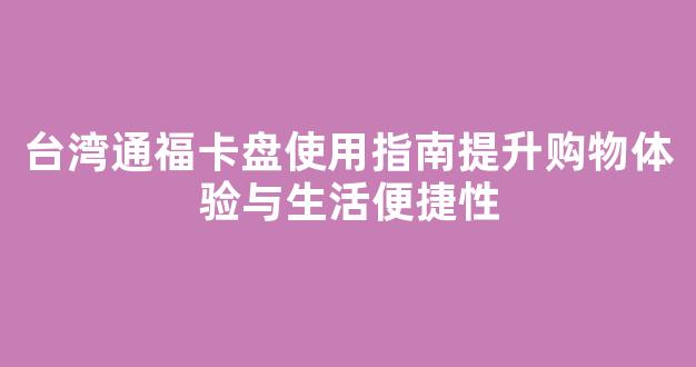 台湾通福卡盘使用指南提升购物体验与生活便捷性