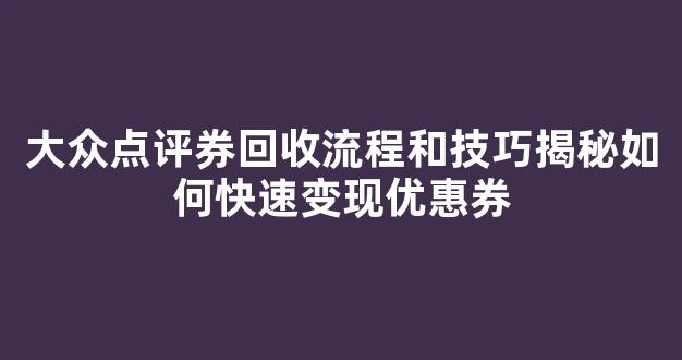 大众点评券回收其实流程比较简单,但需要注意操作安全。一般来说,回收流程包括三个部分:确认券的有效性、选择合适的平台、完成交易。
