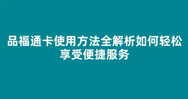 品福通卡使用方法全解析:如何轻松享受便捷服务