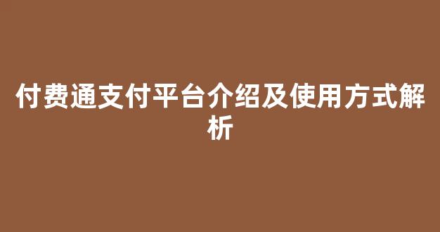 付费通支付平台介绍及使用方式解析
