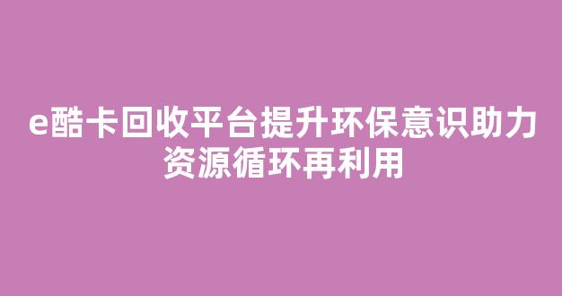 在当前全球环境保护日益受到重视的背景下,回收利用作为一种有效的环保措施,逐渐成为了人们生活的一部分。e酷卡回收平台作为一个创新的环保平台,致力于提升公众的环保意识,并推动资源的循环再利用。通过简单的操作和快捷的回收流程,e酷卡回收平台帮助用户轻松参与环保行动,为社会可持续发展做出贡献。本篇文章将介绍e酷卡回收平台如何通过提升环保意识和助力资源循环再利用,促进环保事业的发展。