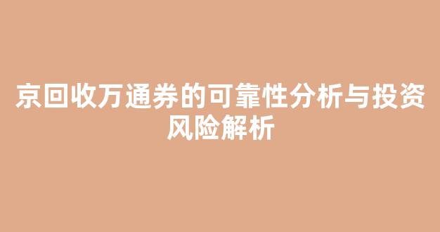 随着互联网和电子商务的发展,越来越多的消费者开始关注回收平台的安全性和可靠性。京回收万通券作为一种常见的二手交易商品,吸引了很多投资者的关注。但是,对于普通消费者和投资者来说,京回收万通券的价值和可靠性究竟如何呢?本文将对京回收万通券的可靠性进行分析,并探讨投资过程中可能面临的风险。