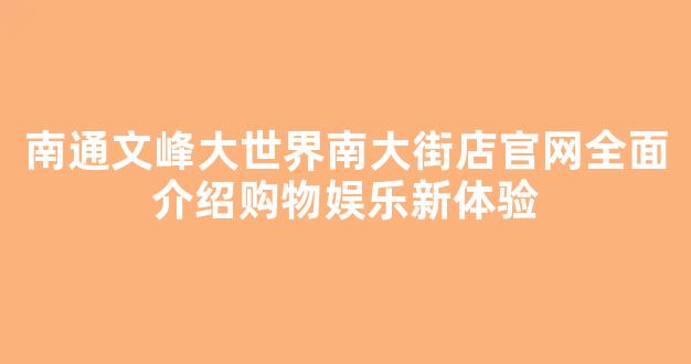 南通文峰大世界南大街店官网全面介绍购物娱乐新体验