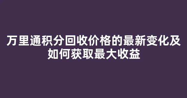 万里通积分作为一种常见的消费奖励积分,已经成为越来越多消费者的选择。随着积分市场的变化,万里通积分的回收价格也在不断调整。了解这些变化并掌握如何在积分回收中获得最大收益,对于每个消费者来说都是至关重要的。本文将详细介绍万里通积分回收价格的最新变化,以及如何在积分回收过程中实现最大的收益。
