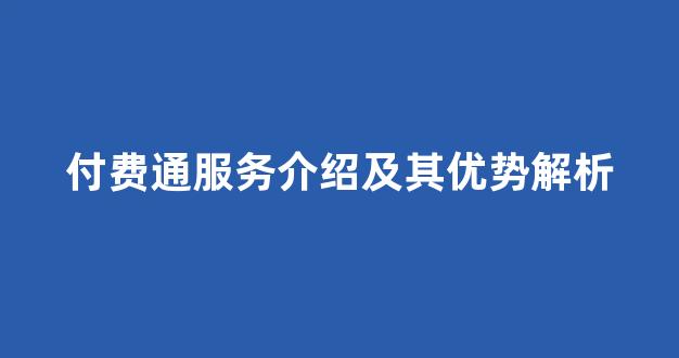 付费通服务介绍及其优势解析