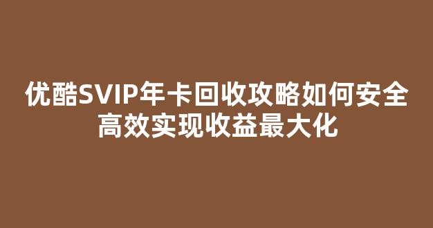 优酷SVIP年卡在使用过程中,可能有很多用户并不会一直使用到期满。如果您想把闲置的优酷SVIP年卡变现,那么回收是一个不错的选择。本文将介绍如何通过安全、高效的方法回收优酷SVIP年卡,从而实现最大收益。