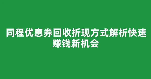 在现代社会,赚钱的方式变得越来越多样化。随着互联网的发展,各种新兴的赚钱机会也应运而生。比如,利用同程优惠券回收折现方式来快速赚钱,便成为了许多人的选择。这种方式不仅简单易行,而且收益可观,非常适合那些希望快速赚取额外收入的人。
