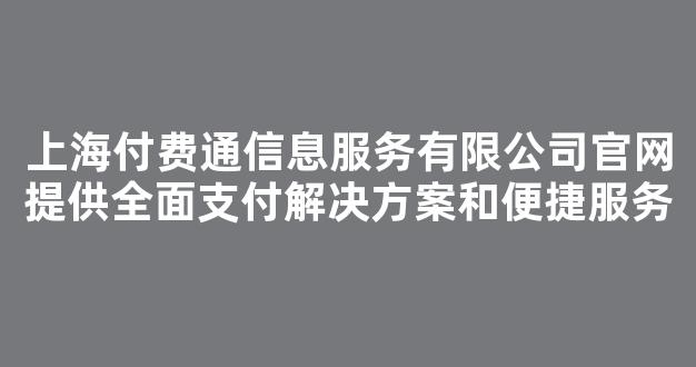 上海付费通信息服务有限公司官网提供全面支付解决方案和便捷服务