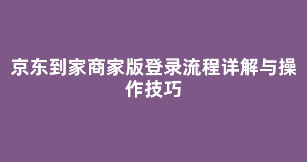 京东到家商家版登录流程详解与操作技巧