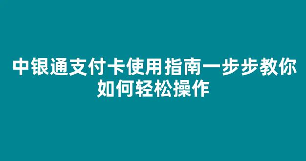 中银通支付卡使用指南:一步步教你如何轻松操作