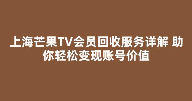 上海芒果TV会员回收服务详解 助你轻松变现账号价值