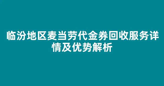 临汾地区麦当劳代金券回收服务详情及优势解析