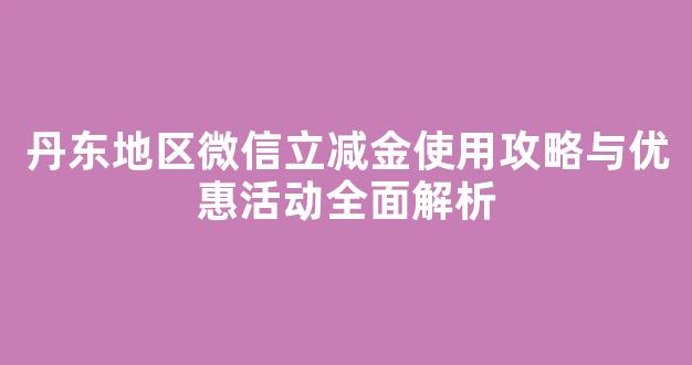 微信立减金是微信推出的一项优惠活动,旨在为用户提供消费折扣。特别是在丹东地区,微信立减金的使用和优惠活动已经受到越来越多用户的关注。本文将全面解析丹东地区微信立减金的使用攻略,并详细介绍如何享受这些优惠活动,帮助用户更好地利用微信立减金进行消费。