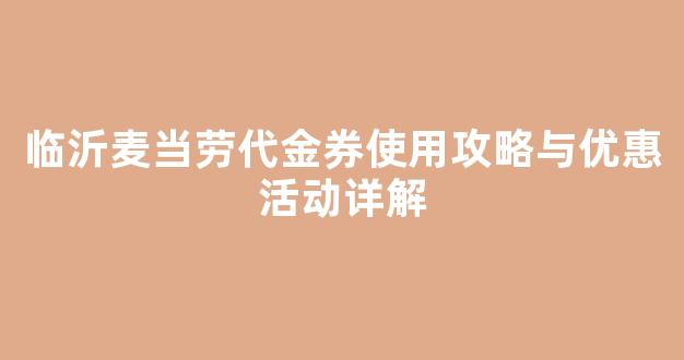 临沂麦当劳代金券使用攻略与优惠活动详解