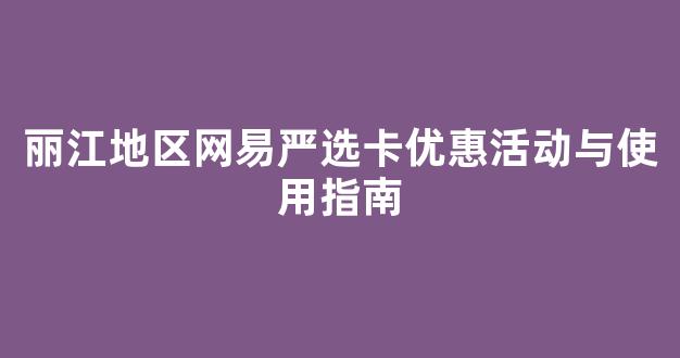 网易严选卡是网易旗下推出的一种会员卡,通过它用户可以享受各种优惠活动和购物特权。对于丽江地区的消费者来说,网易严选卡的使用不仅可以获得折扣,还能参与各种专属的活动。本文将详细介绍丽江地区网易严选卡的优惠活动与使用指南,帮助大家更好地了解如何使用和享受这些福利。