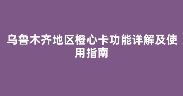 乌鲁木齐地区橙心卡功能详解及使用指南