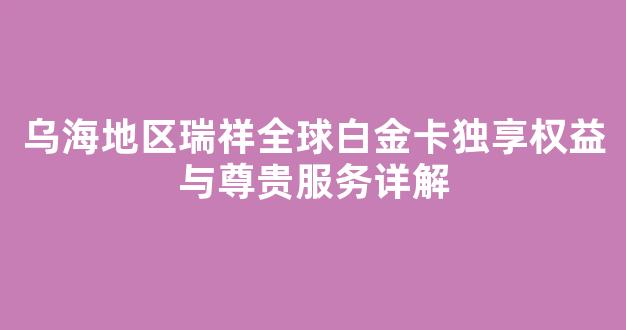 瑞祥全球白金卡是一种高端信用卡,旨在为持卡人提供一系列尊贵服务和独享权益。它不仅是身份的象征,也代表着持卡人享受全球范围内的专属优待。对于乌海地区的居民来说,瑞祥全球白金卡特别设计了符合本地需求的优惠和服务,让卡主在生活的各个方面都能感受到便利与尊贵。