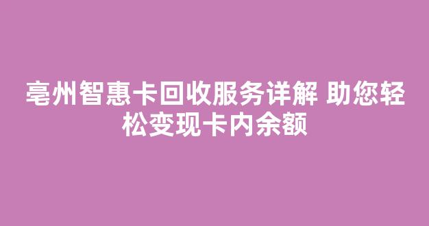 亳州智惠卡回收服务详解 助您轻松变现卡内余额