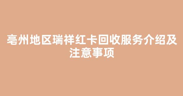 亳州地区瑞祥红卡回收服务介绍及注意事项