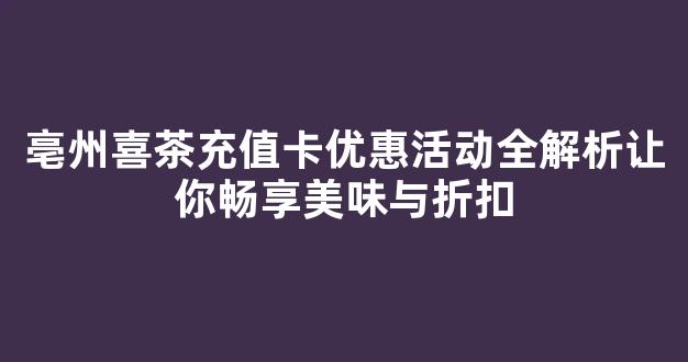 亳州喜茶充值卡优惠活动全解析让你畅享美味与折扣