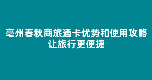 亳州春秋商旅通卡优势和使用攻略让旅行更便捷