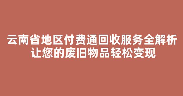 云南省地区付费通回收服务全解析 让您的废旧物品轻松变现