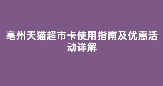 亳州天猫超市卡是天猫超市与亳州市合作推出的一种特别优惠卡,能够让市民享受各种购物优惠。天猫超市卡不仅可以在亳州市内的各大天猫超市门店使用,还可以在线上天猫超市平台进行购买和兑换商品。本文将为大家详细介绍亳州天猫超市卡的使用方法、优惠活动以及一些常见问题的解答,帮助用户更好地利用这一优惠卡享受实惠购物体验。