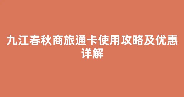 九江春秋商旅通卡使用攻略及优惠详解