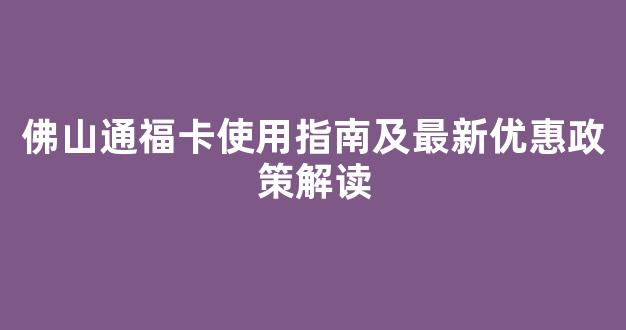 佛山通福卡使用指南及最新优惠政策解读