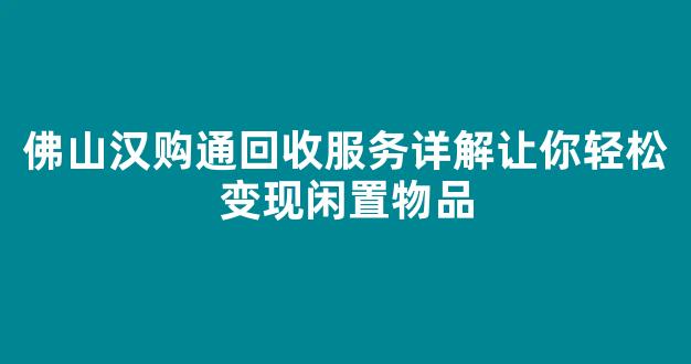佛山汉购通回收服务详解让你轻松变现闲置物品