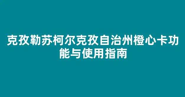 克孜勒苏柯尔克孜自治州橙心卡功能与使用指南