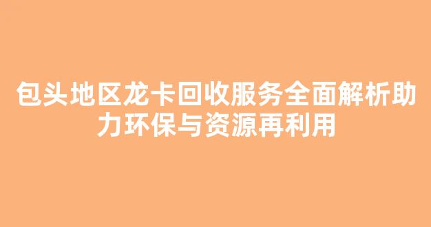 通过以上介绍,相信你对包头地区的龙卡回收服务有了更全面的了解。无论是为了环保还是资源再利用,参与龙卡回收都是一项有意义的行为。希望你能积极行动起来,为保护环境和节约资源贡献一份力量。