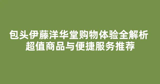 如果你正在寻找一个既能满足购物需求,又能享受便捷服务的地方,那么包头伊藤洋华堂绝对是一个不错的选择。这里不仅有超值的商品,还有贴心的服务,让你在购物的同时感受到舒适与便利。接下来,我将带你全面解析这里的购物体验,并推荐一些值得购买的商品和服务。