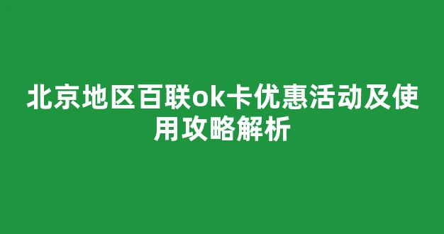如果你在北京生活或工作,一定听说过百联OK卡。这张卡不仅方便,还能帮你省下不少钱。今天,我就来为你详细解析北京地区百联OK卡的优惠活动和使用攻略,让你轻松掌握它的妙用。